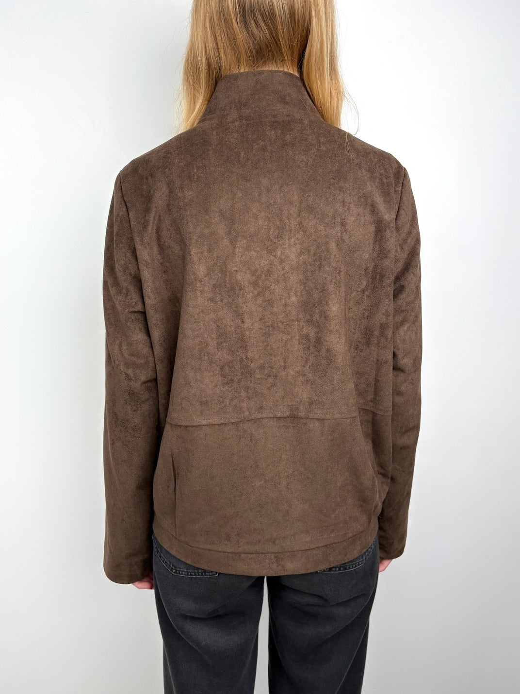 Our suede-effect bomber jacket is the perfect piece to elevate your outfits. Its sleek design, practical snap buttons, and soft, supple material ensure optimal comfort and effortless style. This bomber jacket is the ideal ally for a trendy and versatile silhouette.
